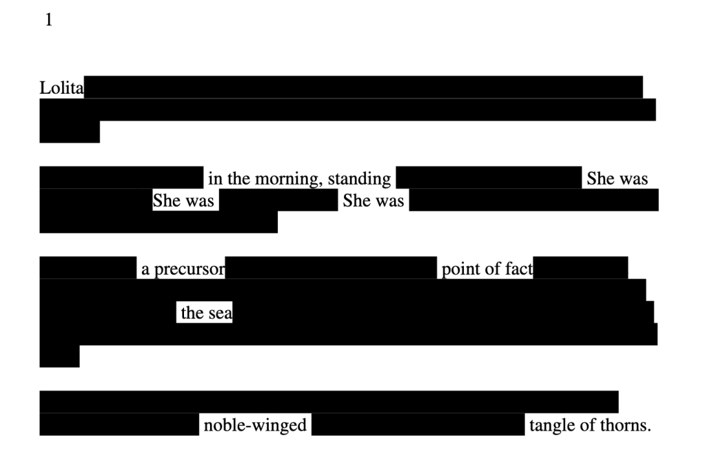 and so, a small project: i’m pulling on the lolita thread. through the process of blackout and erasure, one chapter at a time, i am trying to excavate girlhood from humbert humbert’s clutches. to follow along, join me on substack or instagram at @reclaiming_lolita.